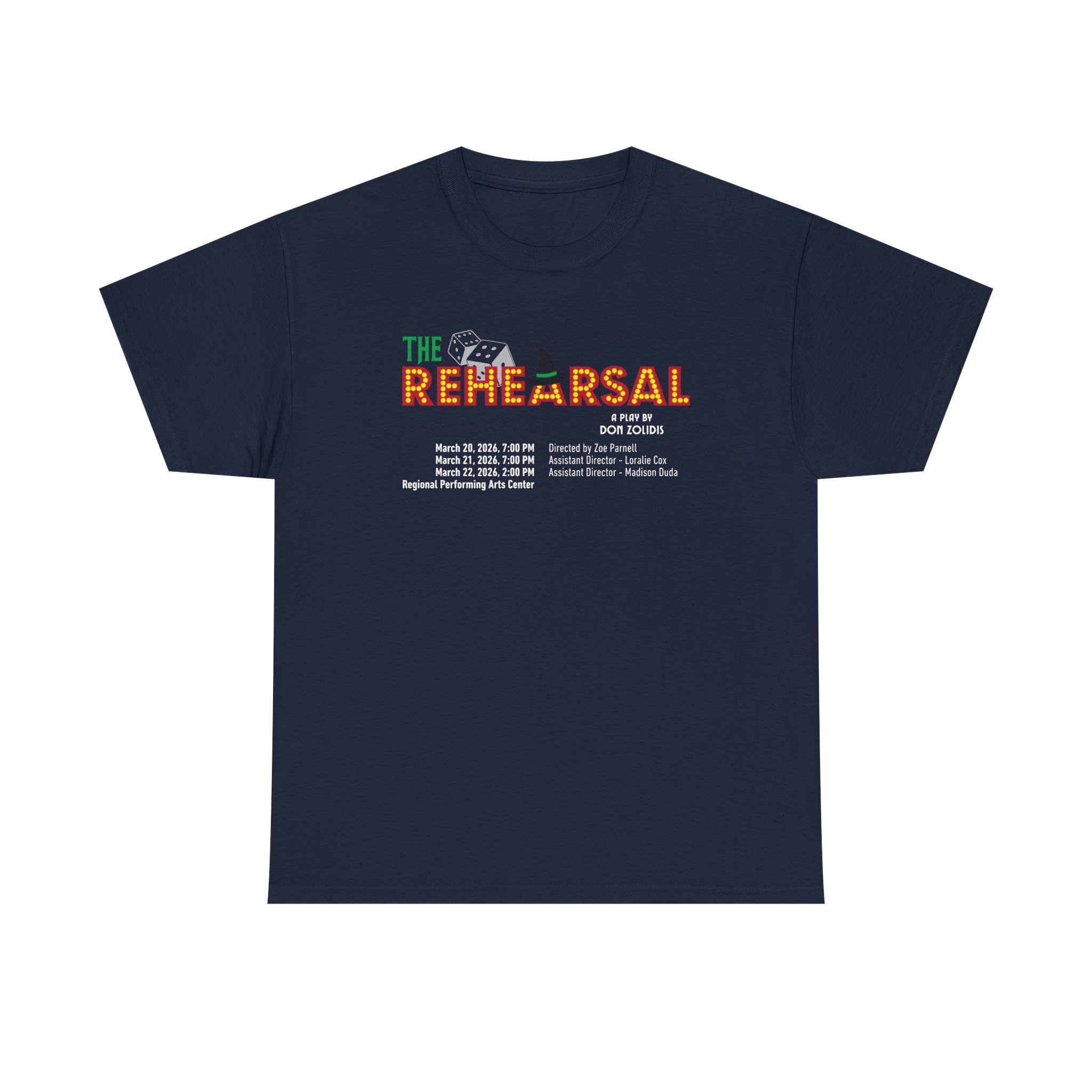 Rep The Rehearsal in a shirt built to last longer than tech week. Printed on the trusted Gildan 5000 Heavy Cotton Tee, this show shirt delivers a classic look with the durability you want for rehearsals, strike days, and everyday wear. The tightly knit 100% cotton fabric gives the design crisp detail and color that holds up wash after wash, while the seamless body and reinforced shoulders keep the fit comfortable and reliable. It’s a no-frills, go-anywhere tee—just like the work that happens before opening night.